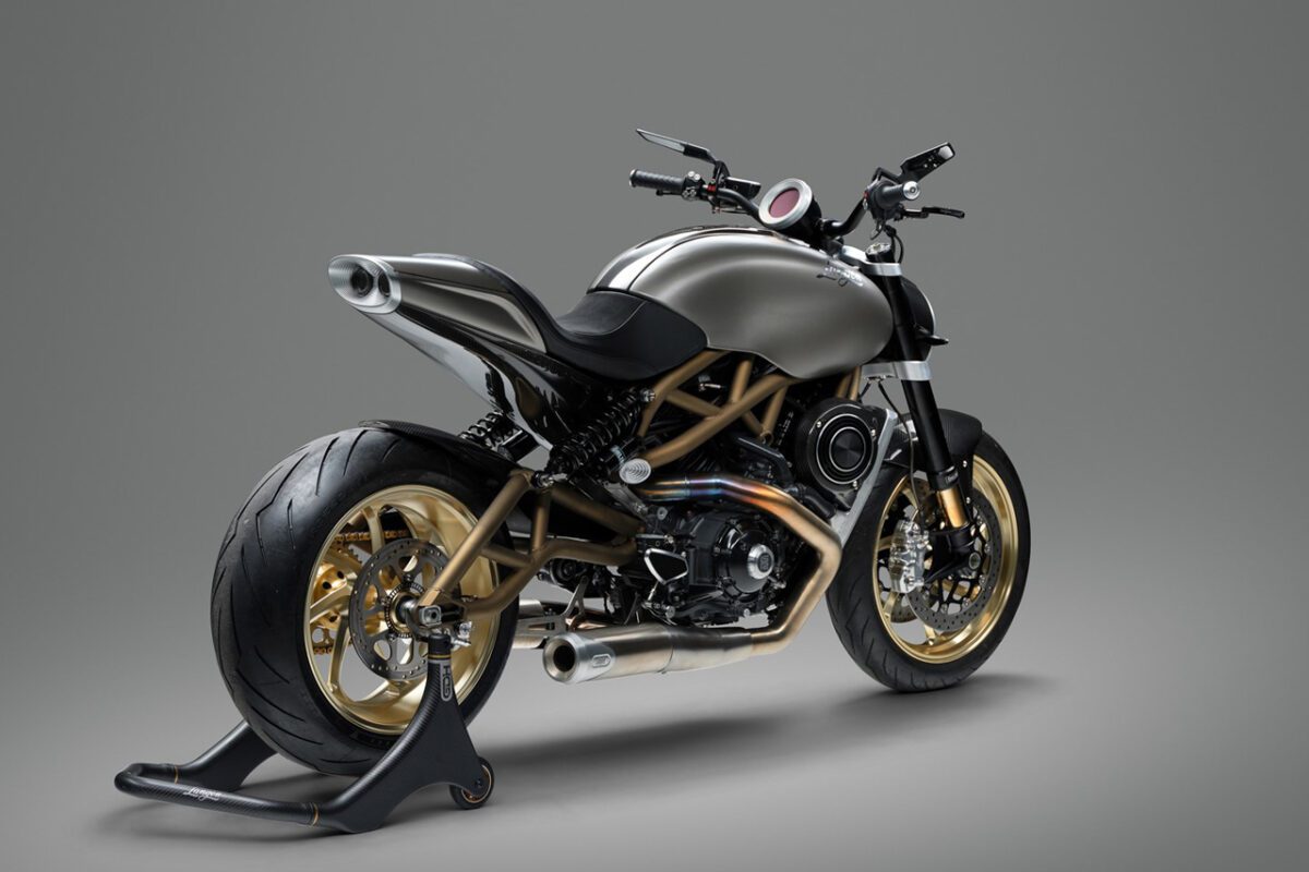 پیشرانه این موتورسیکلت با یک گیربکس شش‌سرعته و کلاچ slipper همراه شده است. شاسی فولادی لوله‌ای با ساختار space frame بدنه را تشکیل می‌دهد. طراحی trellis swingarm باعث می‌شود چرخ عقب آلومینیومی CNC با مقطع ۲۴۰ به شکل قابل توجهی دیده شود.